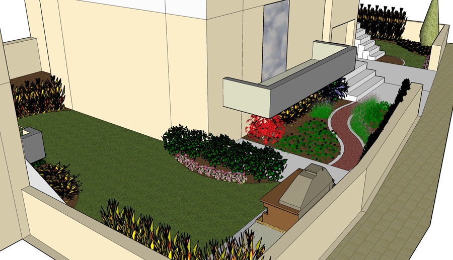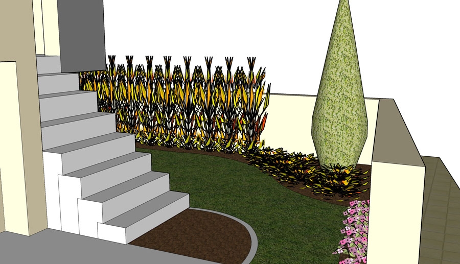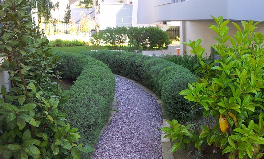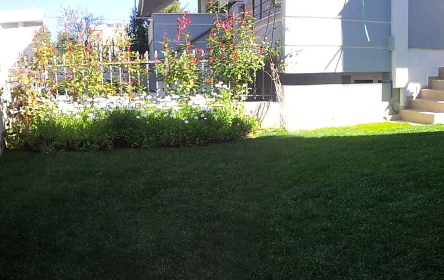 Κυρίαρχο στοιχείο ο χλοοτάπητας σε συνδυασμό απο Φωτίνιες και πολύχρωμες Διμορφοθήκες