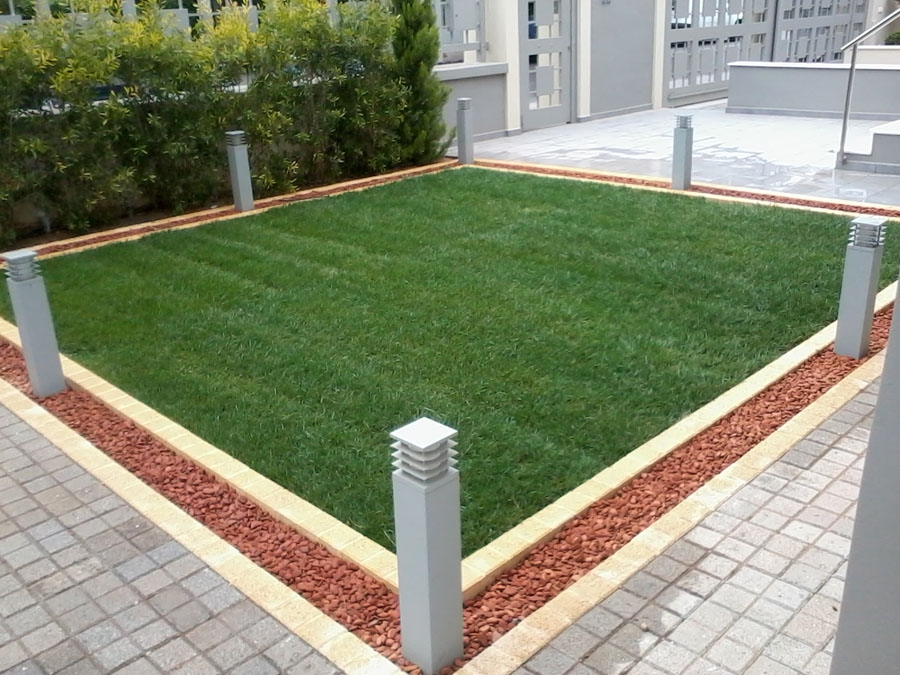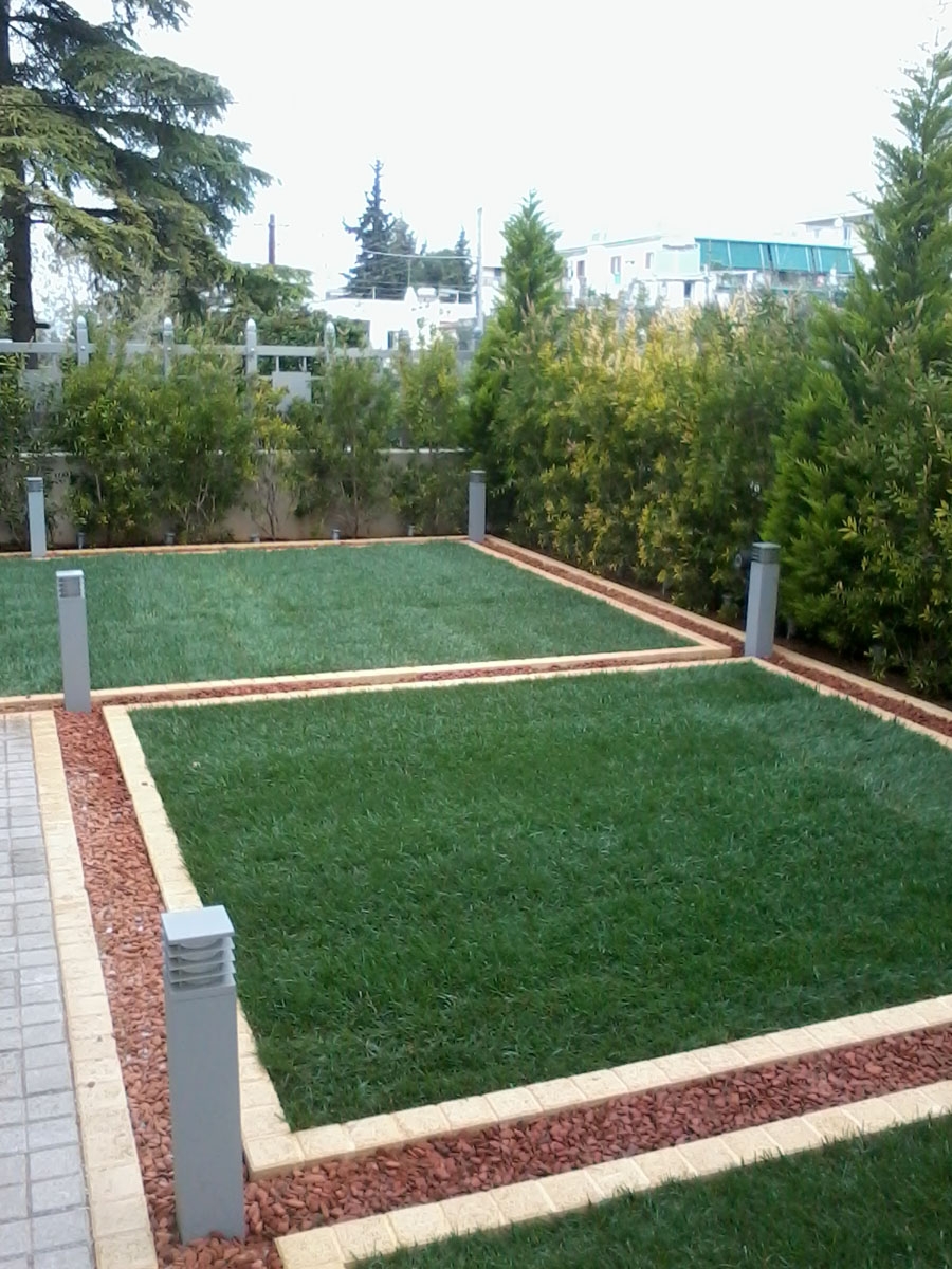 Τοποθέτηση Φυσικού χλοοτάπητα και Φύτευση περιμετρικά του κήπου.